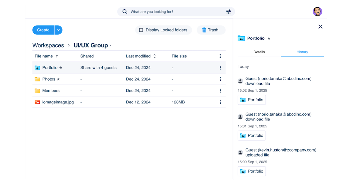 また、監査対応もご安心ください。外部ユーザーが行った操作は細かく履歴に保存されます。
